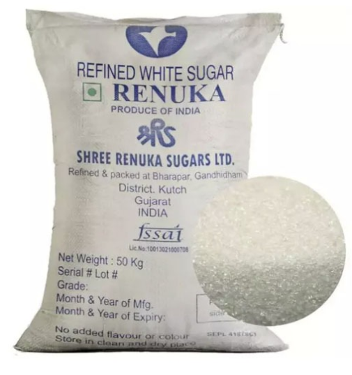 - Indian white crystal sugar in a 50 kg bag: